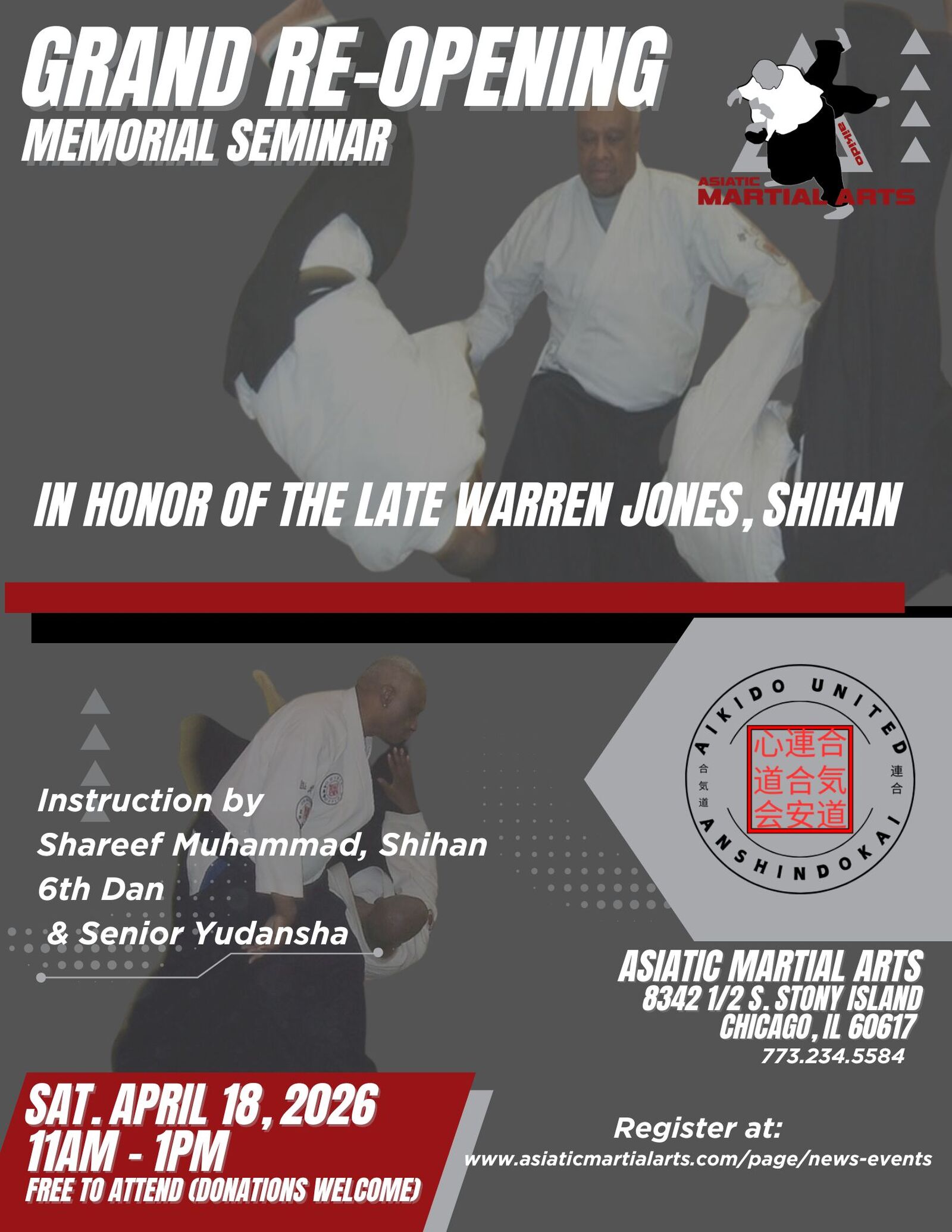 GRAND RE-OPENING & MEMORIAL SEMINARSaturday April 18, 2026, 11am - 1pmFREE TO ATTEND (Donations welcome, but not required)